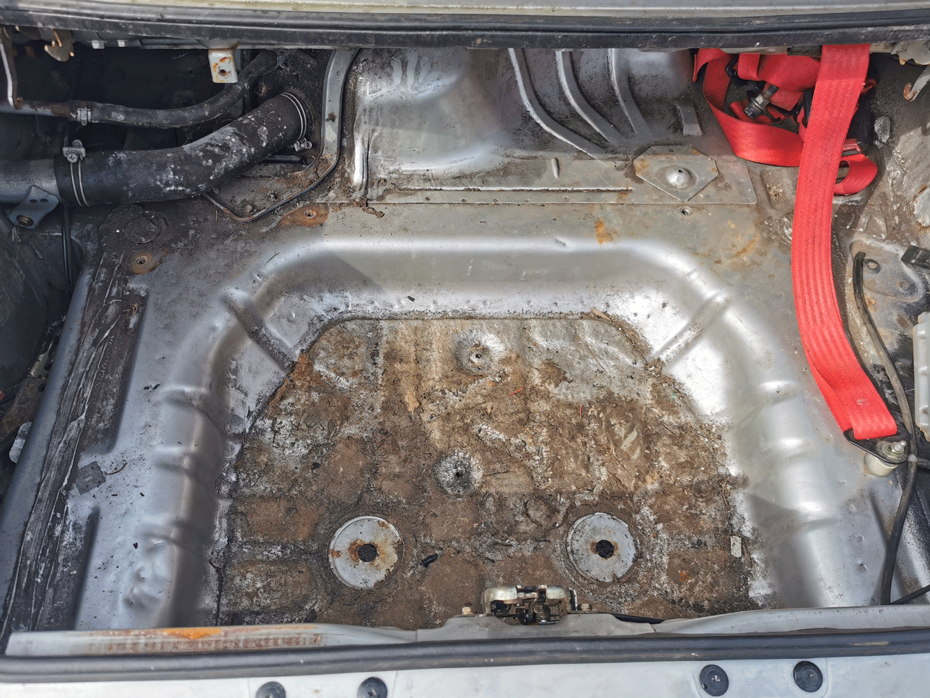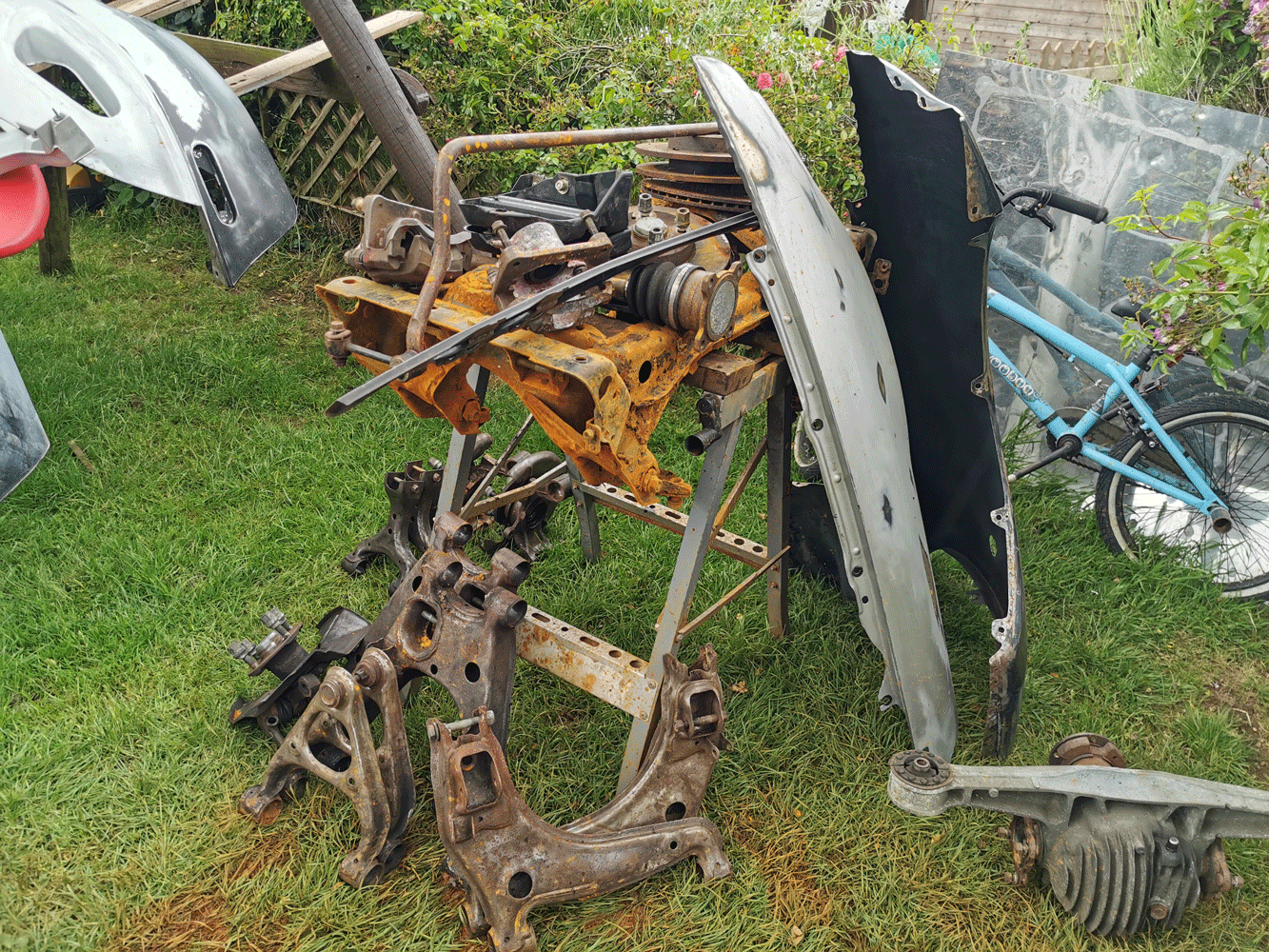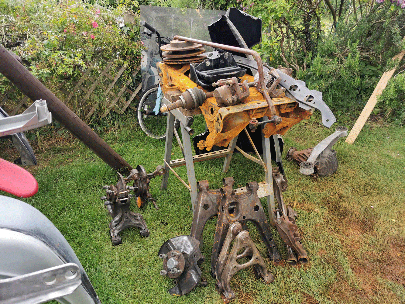 The car was completely stripped, interior and exterior. I removed what crud I could from components with a wire wheel on a drill. The wishbones, arms and subframes then went through a process called electrolysis, where I placed the component into a big bucket of electrolyte (water and washing powder!). In this bucket I also placed a sacrificial bit of metal. The sacrificial piece of metal acted as the anode, connected to the positive lead of an old PSU I modified to give a constant 12v feed. The negative end connected to the car part I wished to de-rust. After roughly 24 hours I would remove the part and wire brush it again. You can see the results of this in some of the images below with a side-by-side comparison. What did I learn from this project? Project times can over-run and become very expensive!
